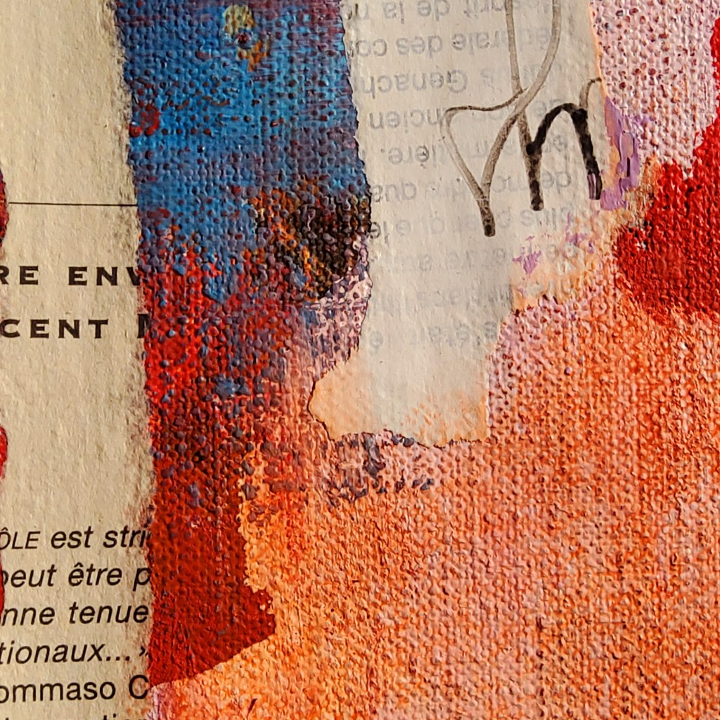 Impression car j’utilise des papiers imprimés, mais aussi parce que je me laisse porter par mes impressions visuelles, mes sensations… alors il semblerait que les collages/découpages trouvent le rythme pour s’intégrer au fond. Comme un puzzle où chaque pièce est destinée à une place .