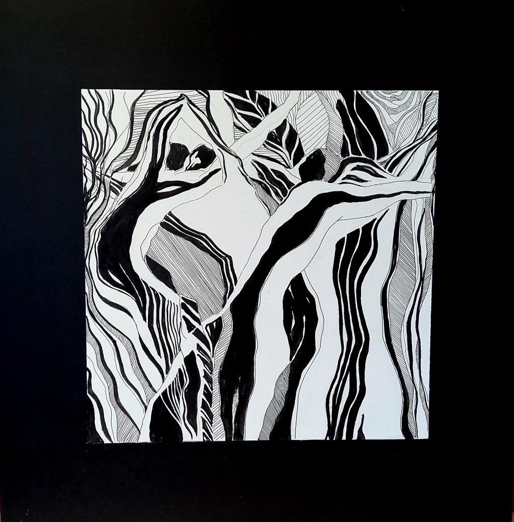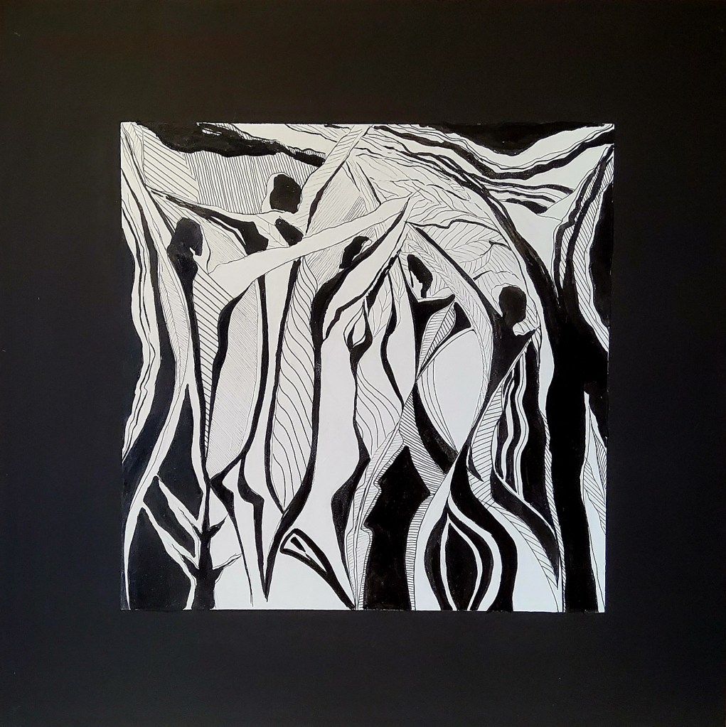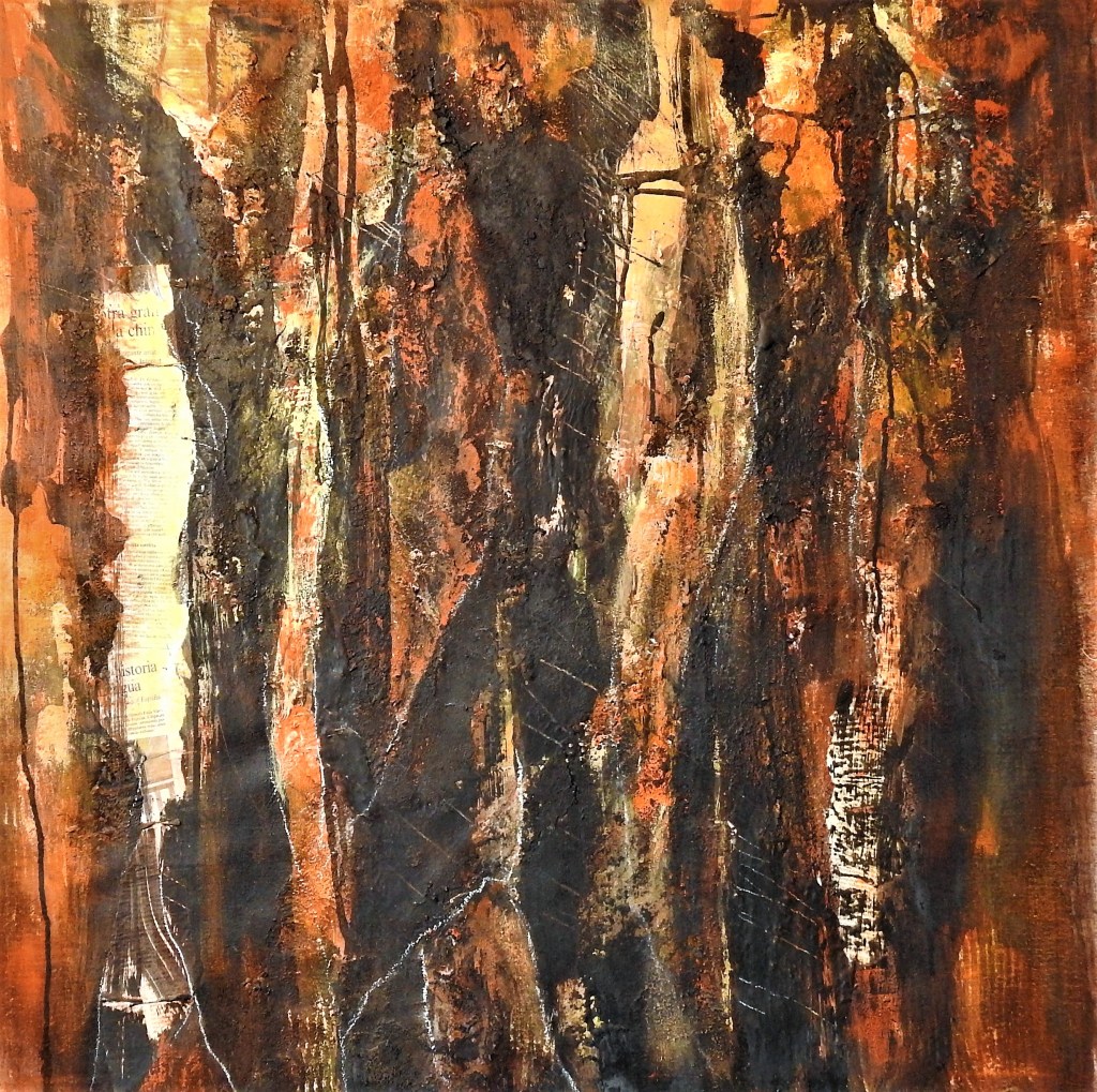 SELECTION DE TRAVAUX TREESCENDANCE 2022/2023 Série acrylique, pigments, sable et collage/toile 90x90cm TREELINES 2021 Série encres/panneau bois 54x54cm CATREEDRALS 2019/2021 Série acrylique et collage/toile 72x72cm